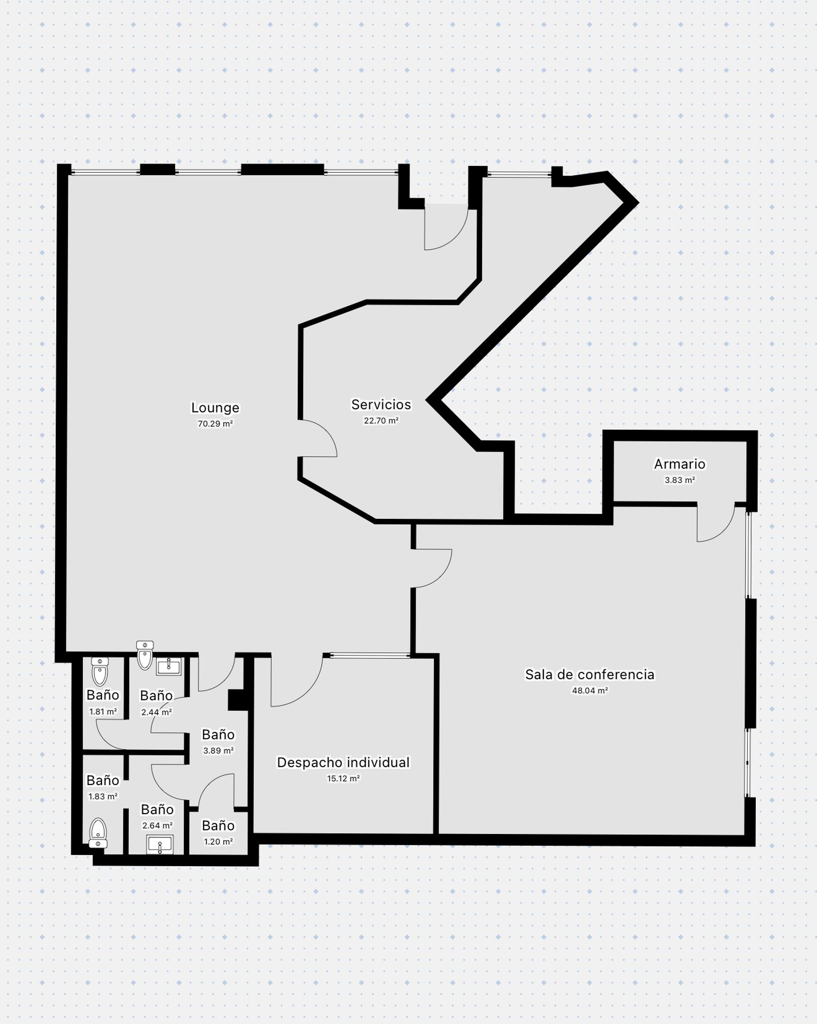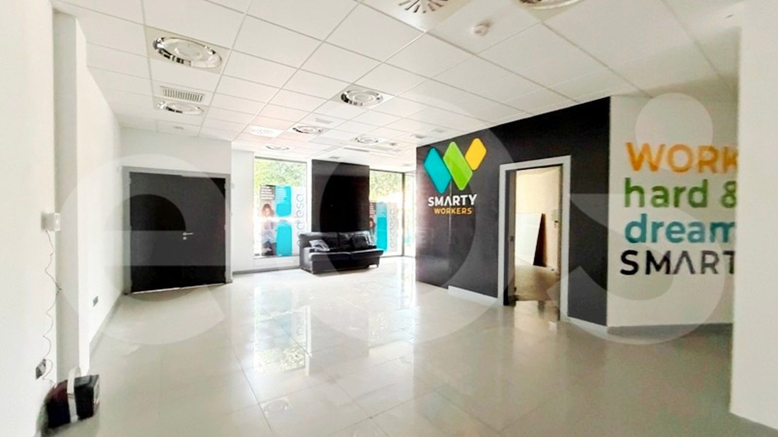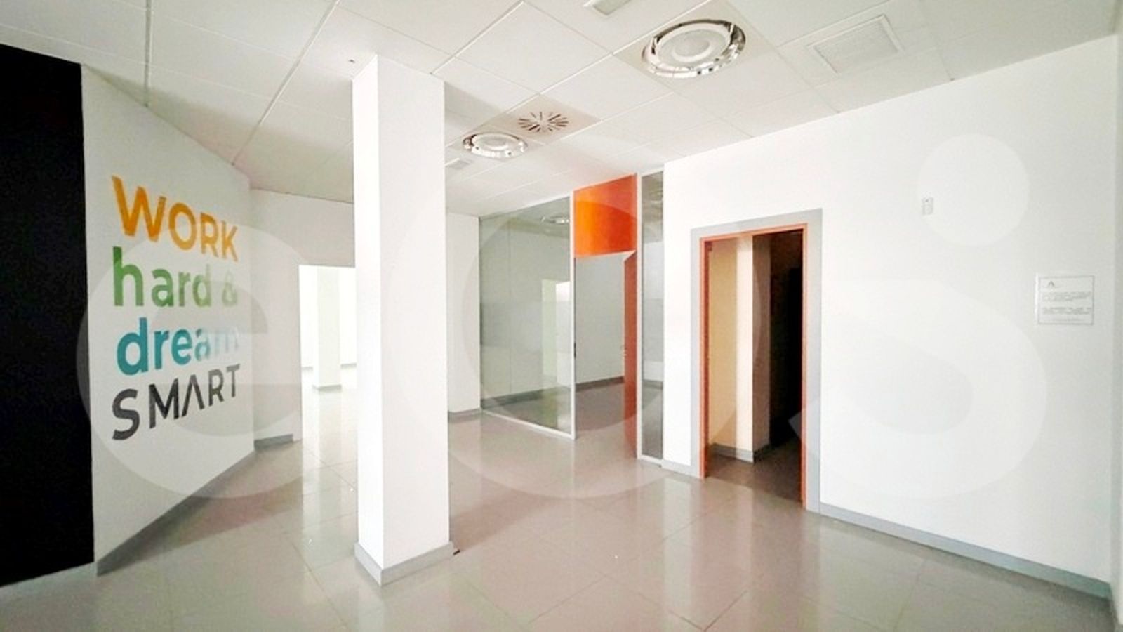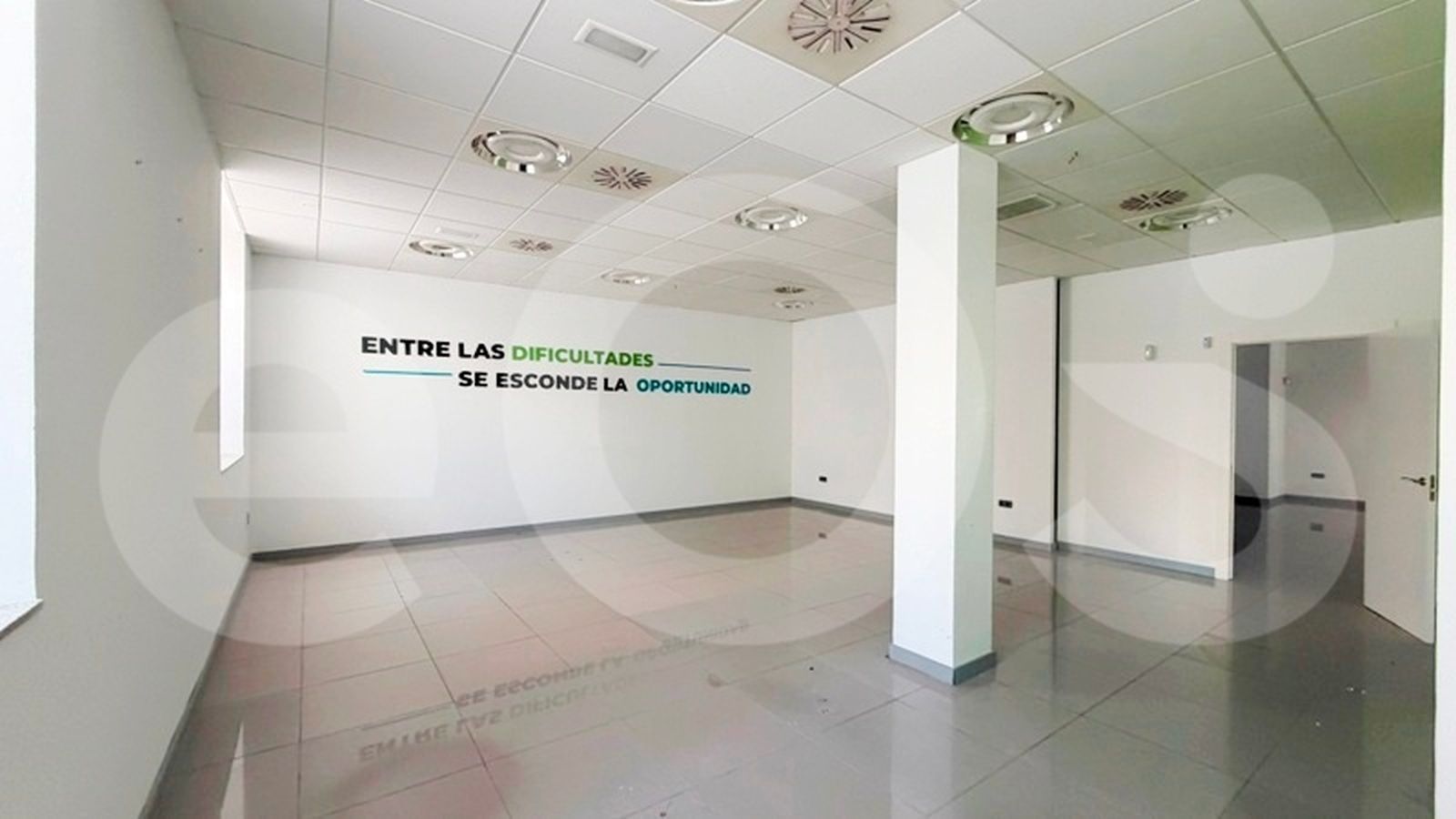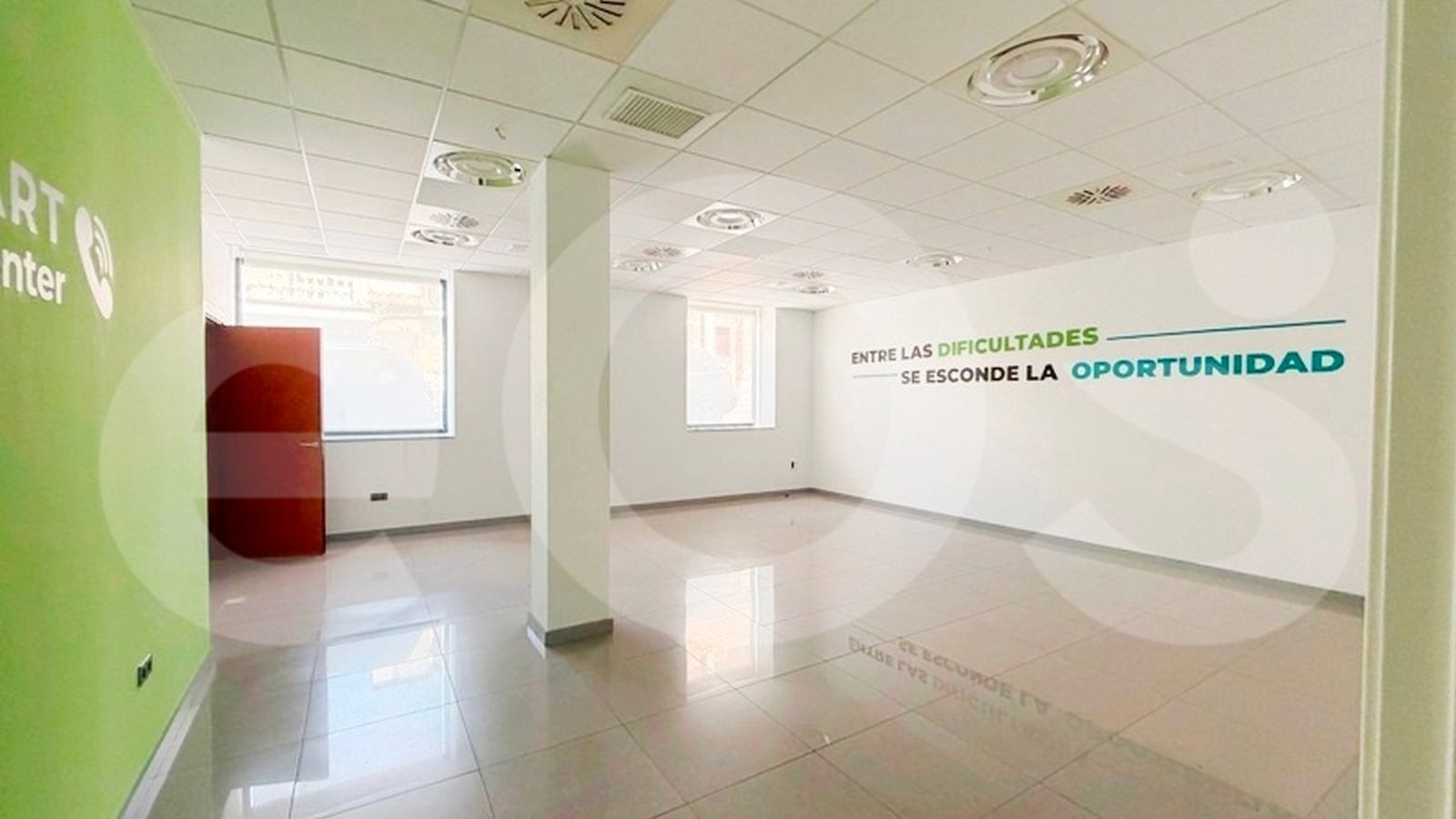 El local se organiza en torno a una amplia estancia principal, ideal para atención al público o espacio de trabajo abierto. Asimismo, dispone de sala de conferencias, despacho independiente, sala auxiliar y varios aseos. Por ello, resulta adecuado tanto para equipos numerosos como para actividades que requieran separación entre zonas de trabajo y atención al cliente.